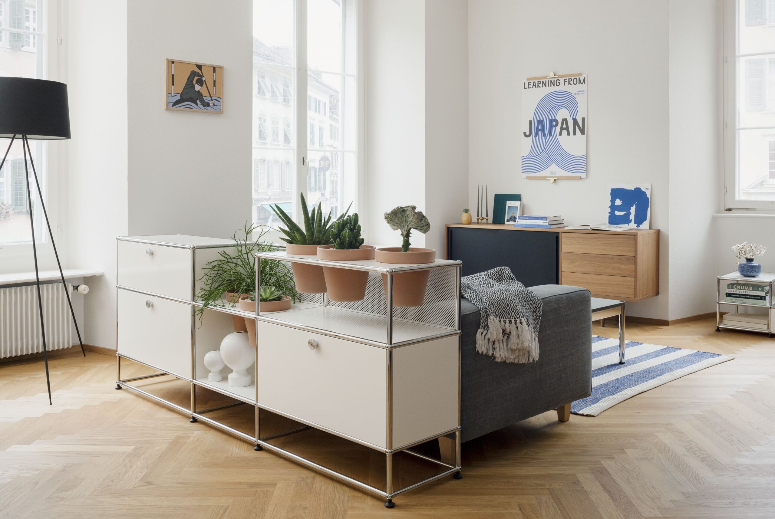 Ontwerp je meubel volgens jouw gewenste afmetingen en kies de functies die je nodig hebt. Je kunt kiezen uit 14 USM-kleuren, altijd gecombineerd met de chromen structuur.